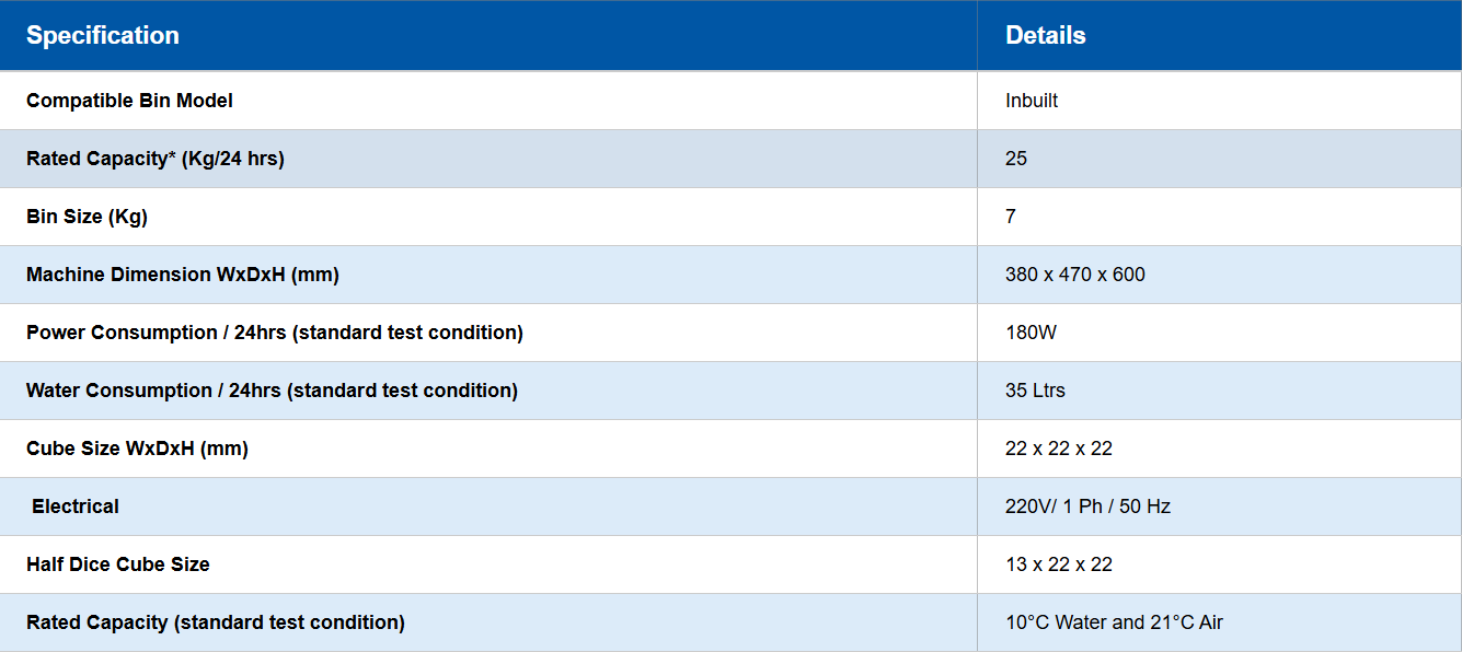 • Low water consumption